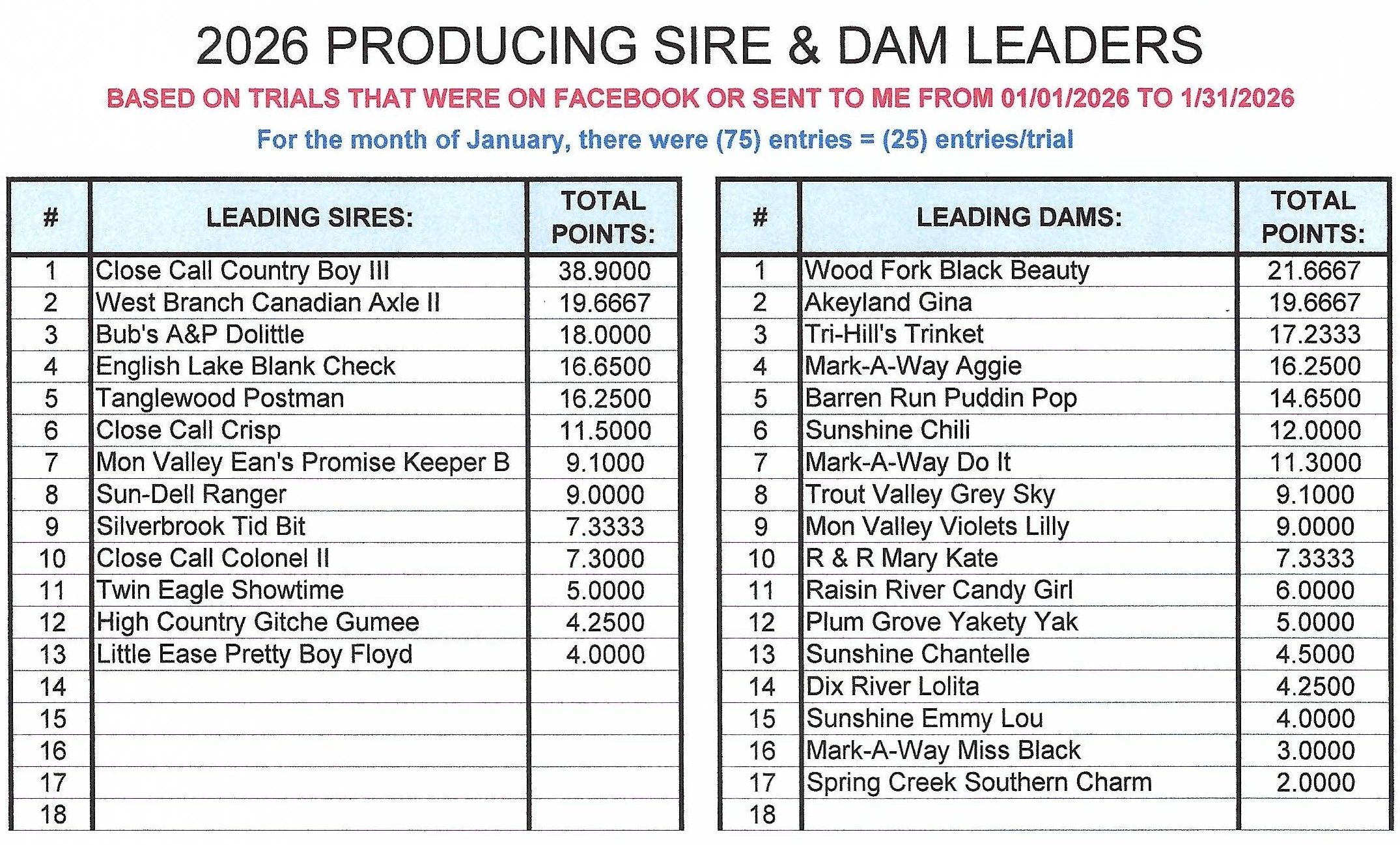 · The UBC/PA Assoc. qualifying trial at New Eagle on Sunday, February 8, 2026 has been cancelled and will not be rescheduled.
